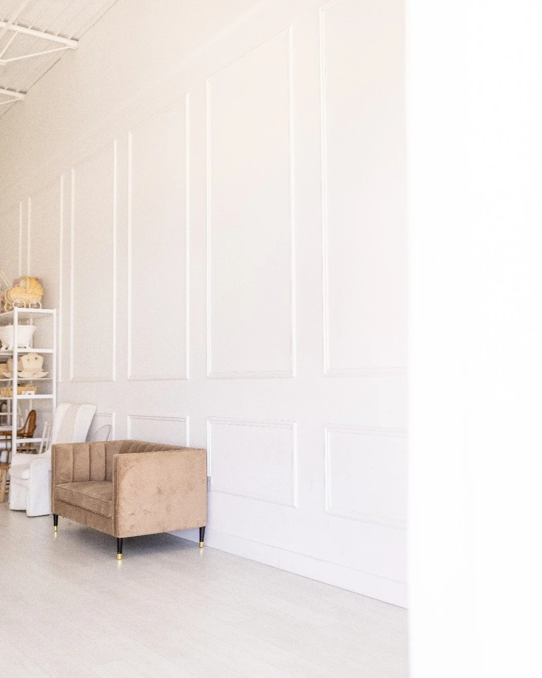 Rose + Salt Studio is a twelve hundred square foot studio designed to meet all your photography needs. With beautiful natural light, bright and airy design, a thoughtfully curated studio wardrobe, hundreds of props and more, we want our studio to add variety to your business and help you beautifully preserve moments in time for your clients. We hope the space inspires you and empowers you to make some creative magic.